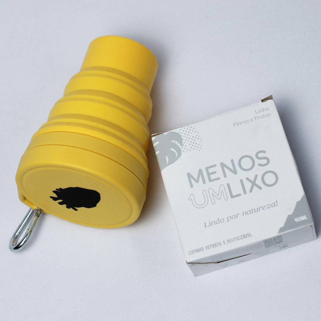 Copo retrátil de silicone 400ml de alta durabilidade e design moderno. No tamanho original comporta até 400 ml de líquidos ou alimentos e por ser dobrável, é reduzido a menos da metade do tamanho original, auxiliando no transporte. O material do copo é silicone de grau alimentício, livre de BPA, aprovado pela FDA e não tóxico. Não deixa gosto ou odor após o uso. Devido a sua resistência a altas temperaturas, pode ser fervido em água quente ou colocado na máquina de lavar louças. Possui tampa de abrir com perfeito vedamento e é fácil de limpar. O copo dobrável pode ser utilizado para tomar café para viagem, recipiente de bebidas geladas, caneca de escola para crianças, copo para o seu trabalho, entre outros. Este copo é reutilizável e ecologicamente correto, evitando o consumo de resíduos plásticos desnecessários.